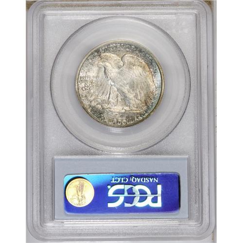 1944-S 50C MS66 PCGS. Speckles of cobalt-blue, golden-