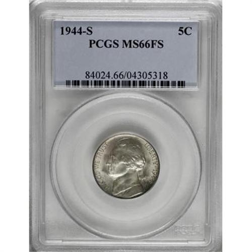 <B>1944-S 5C MS66 Full Steps PCGS.</B></I> PCGS Population (143/27). NGC Census: (14/2). (#84024)<BR><BR><b>Shipping:</b> Coins & Currency (<a target="_blank" href="http://www.heritageauctions.com/common/shipping.php">view shipping information</a>)
