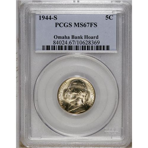 1944-S 5C MS67 Full Steps PCGS. Ex: Omaha Bank Hoard.