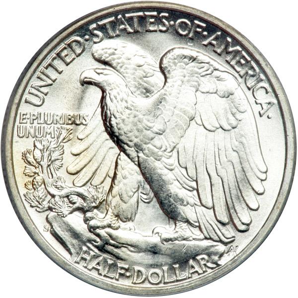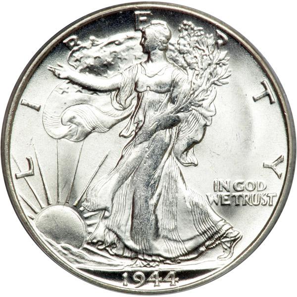 1944-S Liberty Walking Half Dollar. PCGS graded MS-66. A nice white coin; elusive in this stellar condition. Pop 346; 6 finer (PCGS # 6623) .