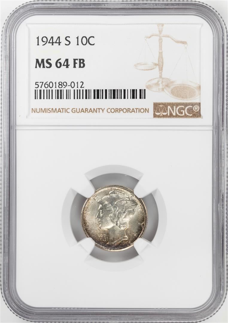 One 1944-S Mercury Dime Coin NGC MS64FB. NGC Certified.