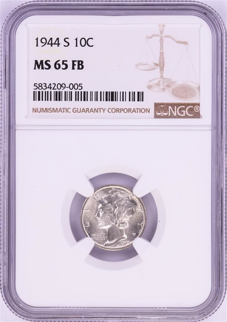 One 1944-S Mercury Dime Coin NGC MS65FB. NGC Certified.