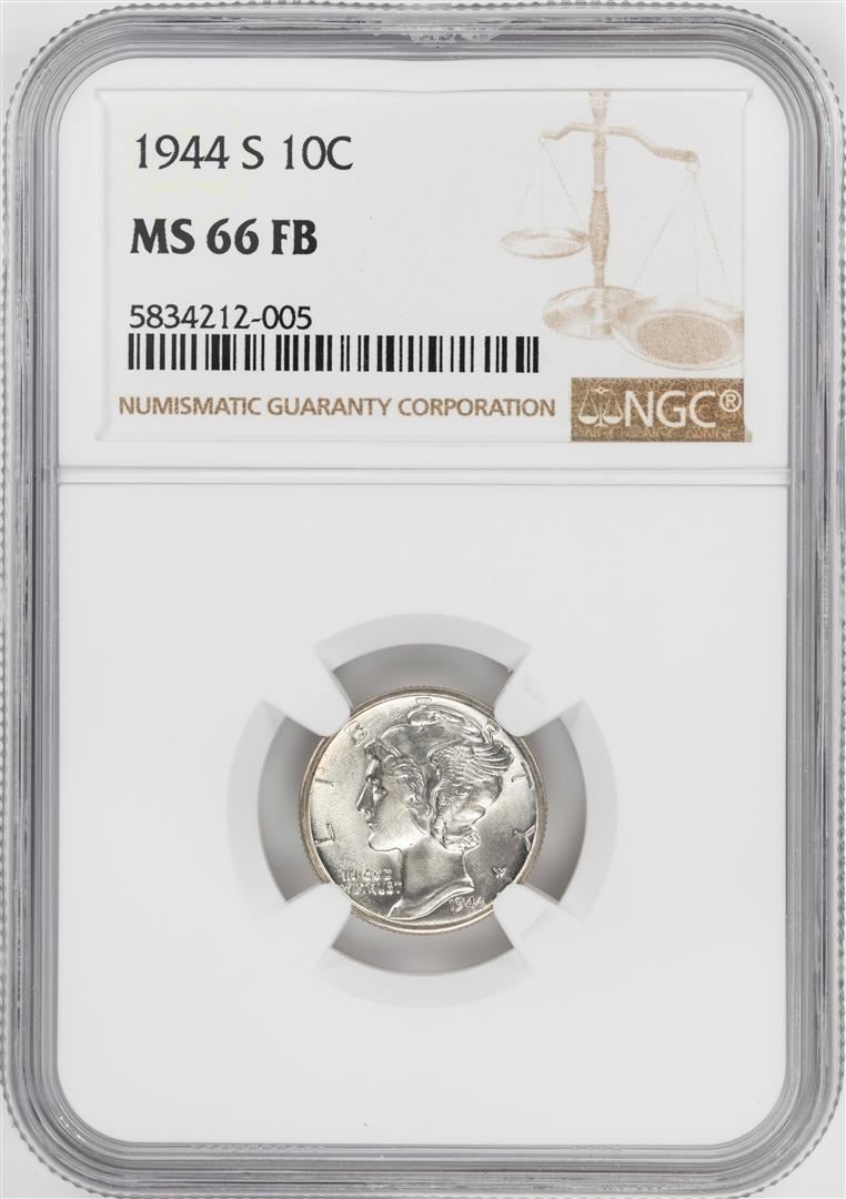 One 1944-S Mercury Dime Coin NGC MS66FB. NGC Certified.