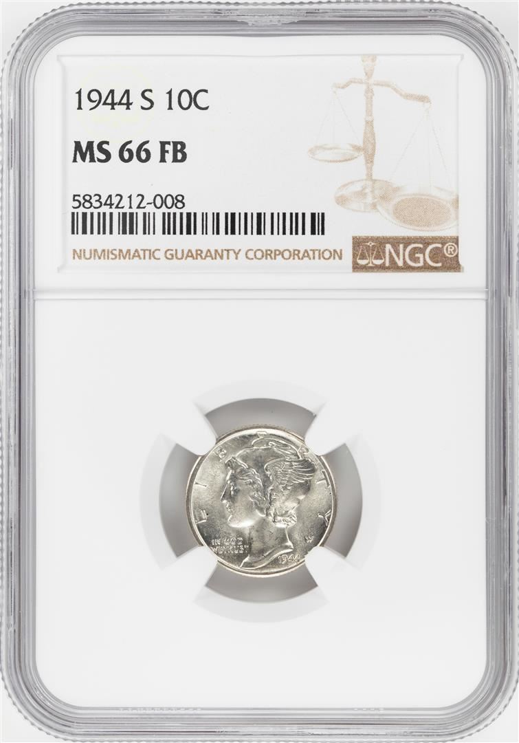 One 1944-S Mercury Dime Coin NGC MS66FB. NGC Certified.