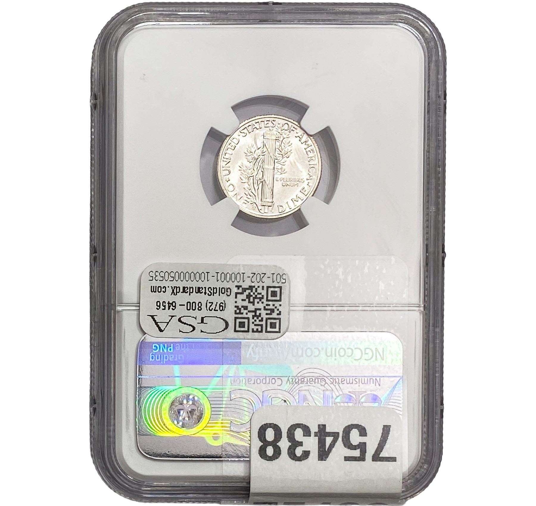 e. Coins sold referencing a third-party grading service are sold “AS IS” without any express or implied warranty, except for a guarantee by GSA that they are genuine. Removal or alteration of the holder, voids all of Bidder’s claims concerning that Product. Certain warranties may be available from the grading services and Bidders are referred to them for further details: Numismatic Guaranty Corporation (NGC), PO Box 4776, Sarasota, FL 34230, www.ngccoin.com/services/writtenguarantee.asp; Professional Coin Grading Services (PCGS), PO Box 9458, Newport Beach, CA 92658, www.pcgs.com/guarantee.html; ANACS, 6555 S. Kenton St., Ste. 303, Englewood, CO 80111; and Independent Coin Grading Co. (ICG), 7901 East Bellview, Ave., Suite 50, Englewood, CO 80111.
