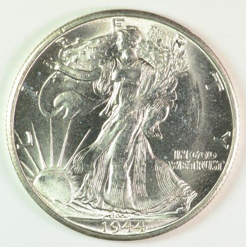 1944-S WALKING LIBERTY HALF DOLLAR, MS-64 BLAST WHITE