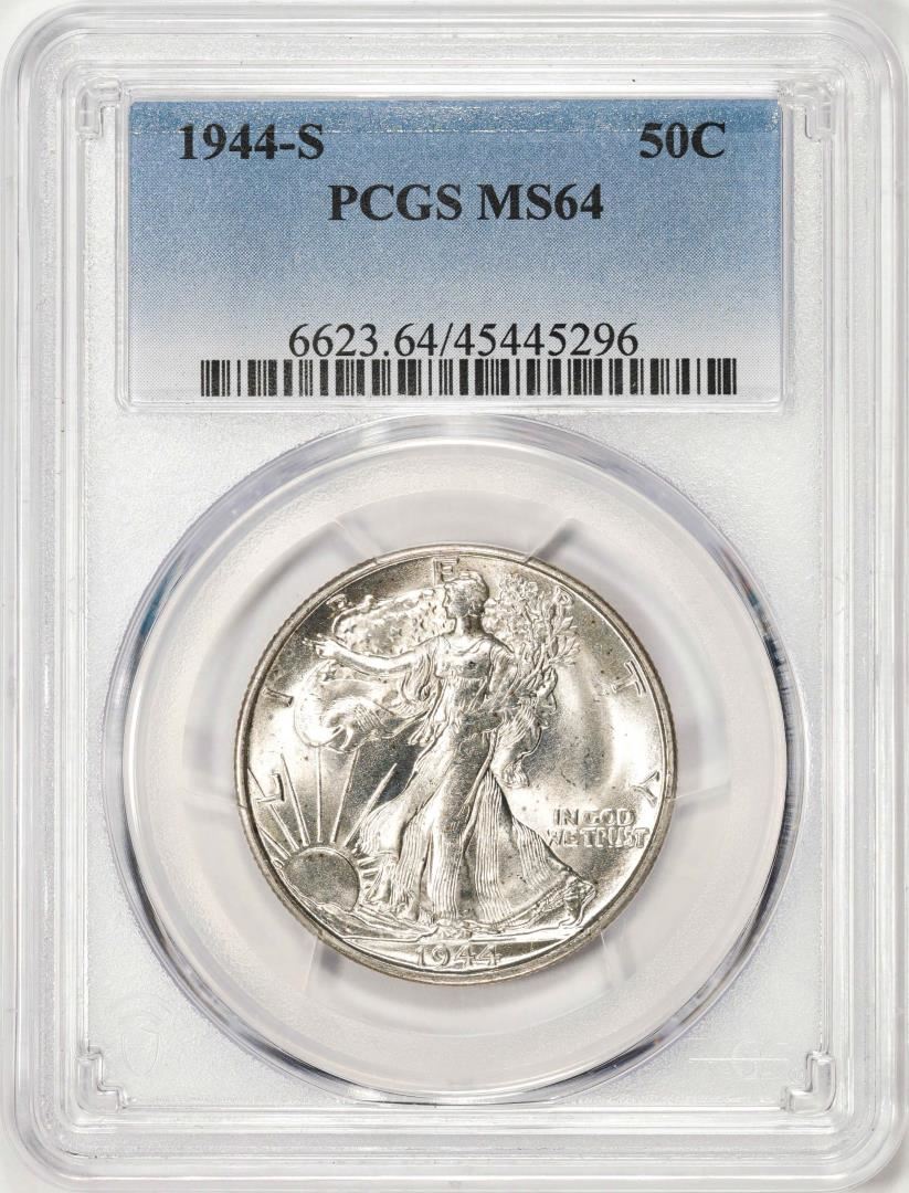 One 1944-S Walking Liberty Half Dollar Coin PCGS MS64. PCGS Graded.