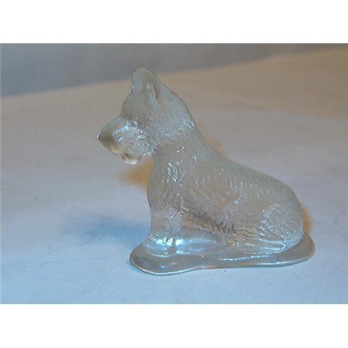THIS IS A CLEAR GLASS SCOTTISH TERRIER FIGURINE MADE AROUND 1944. ALL THE DOGS THAT I PUT ON HERE ARE FROM MY OWN DOG COLLECTION. THIS DOG WAS ADDED TO MY COLLECTION BY MY MOTHER ON OCTOBER 9, 1956. THIS DOG WAS MY MOTHERS WHEN SHE WAS 10 YEARS OLD. I HAVE OVER 300 DOGS THAT I RECEIVED FOR MY COLLECTION FROM 1954 TO 1964 THAT WILL BE PUT UP FOR SALE OR AUCTION. I HAVE THE EXACT DATE THAT I RECEIVED EACH DOG. SOME OF THE DOGS ARE OLDER THAN THE DATE THAT I RECEIVED THEM. I NOW HAVE OVER 1200 DOGS ( OLD AND NEW ) IN MY COLLECTION AND THEY ARE ALL UP FOR SALE OR AUCTION. I GUARANTY THAT MY DOGS ARE THE REAL DEAL. MY DOGS ARE THE ORIGINAL OLD DOGS AND NOT THE FAKES AND REPLICAS. This Dog is in Excellent condition for its age. There are no chips, cracks or repairs on this Dog. I do not see any crazing on this Dog. You can see most of this in my pictures. I HAVE OVER 800 POSITIVE FEEBACKS FOR MY EBAY STORE. Thanks for Looking !!!