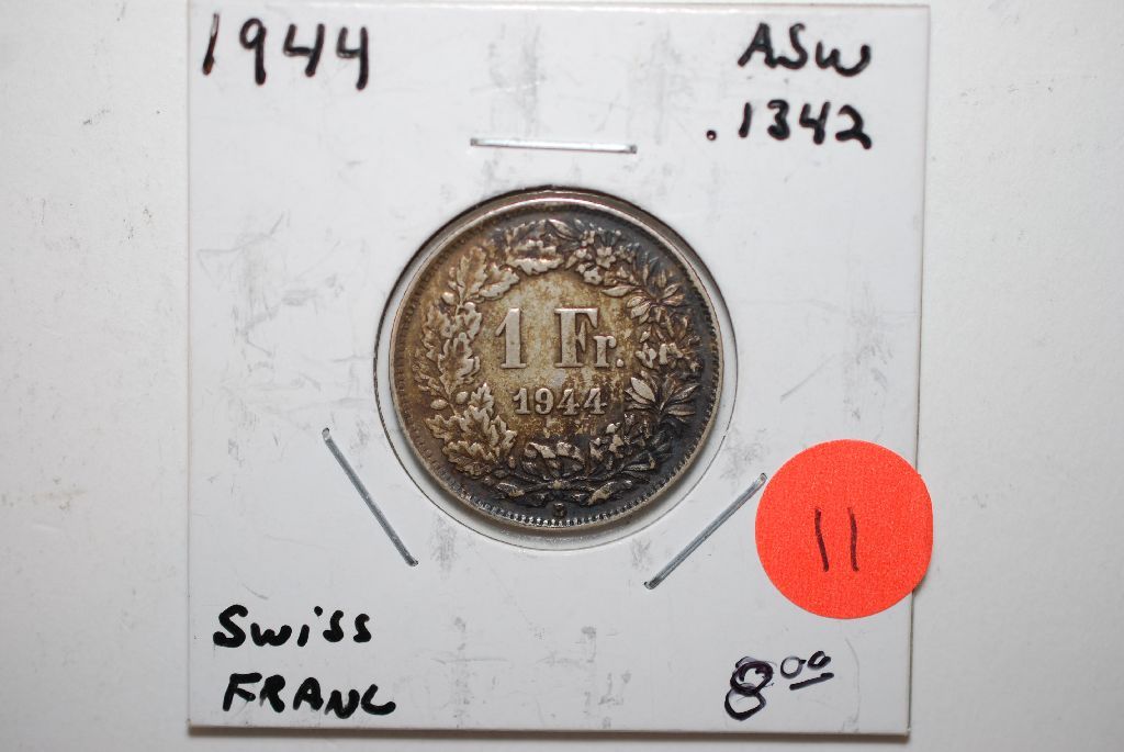 1944 Swiss 1 Franc Foreign Coin; .1342 ASW; EST. $10-15