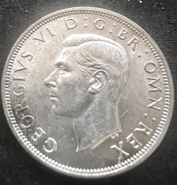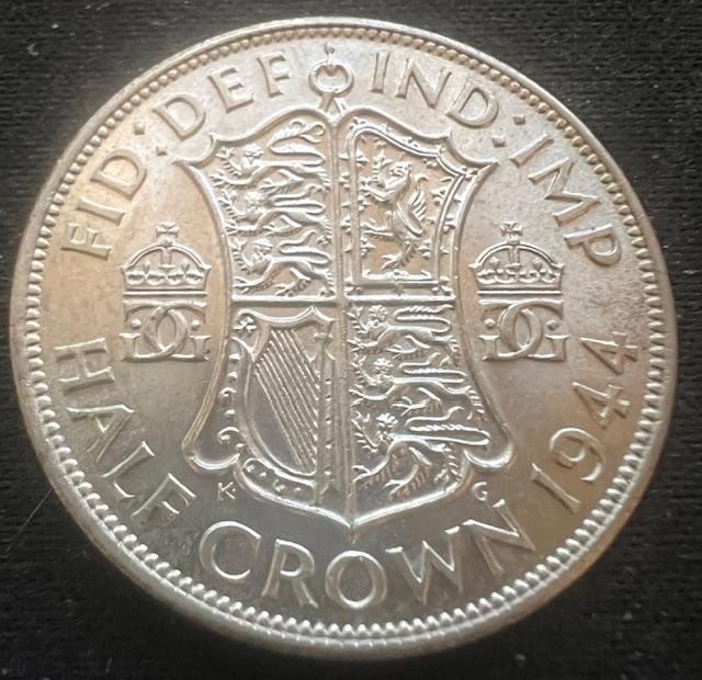 1944 UK GB GREAT BRITAIN SILVER HALF CROWN COIN BU+