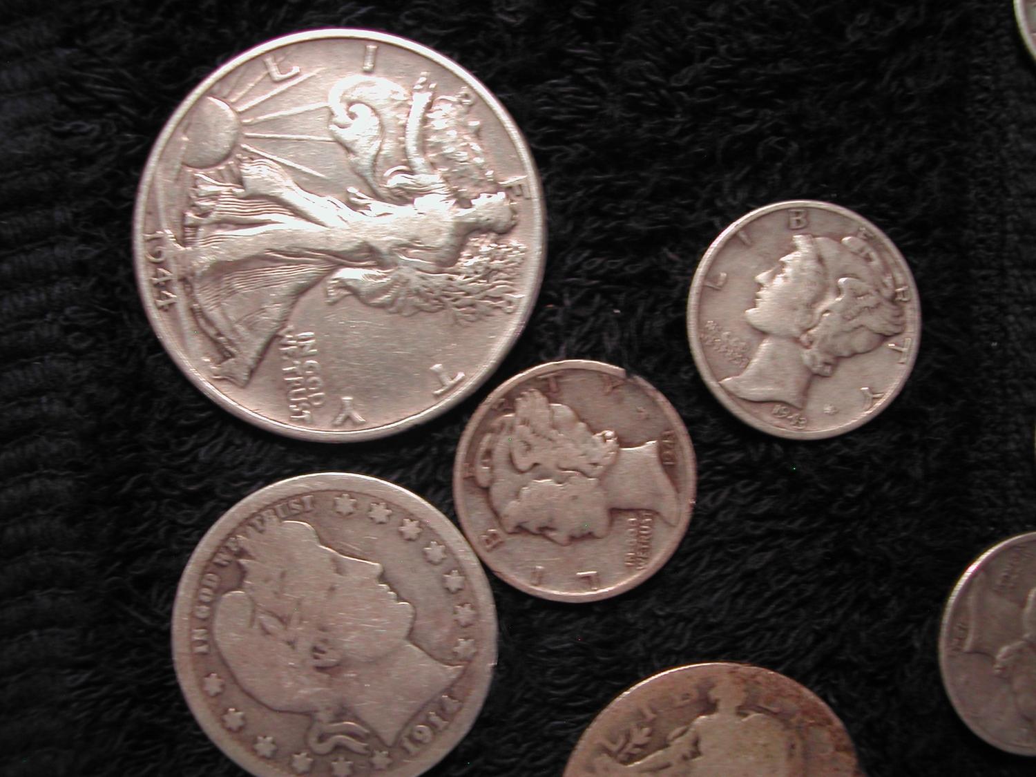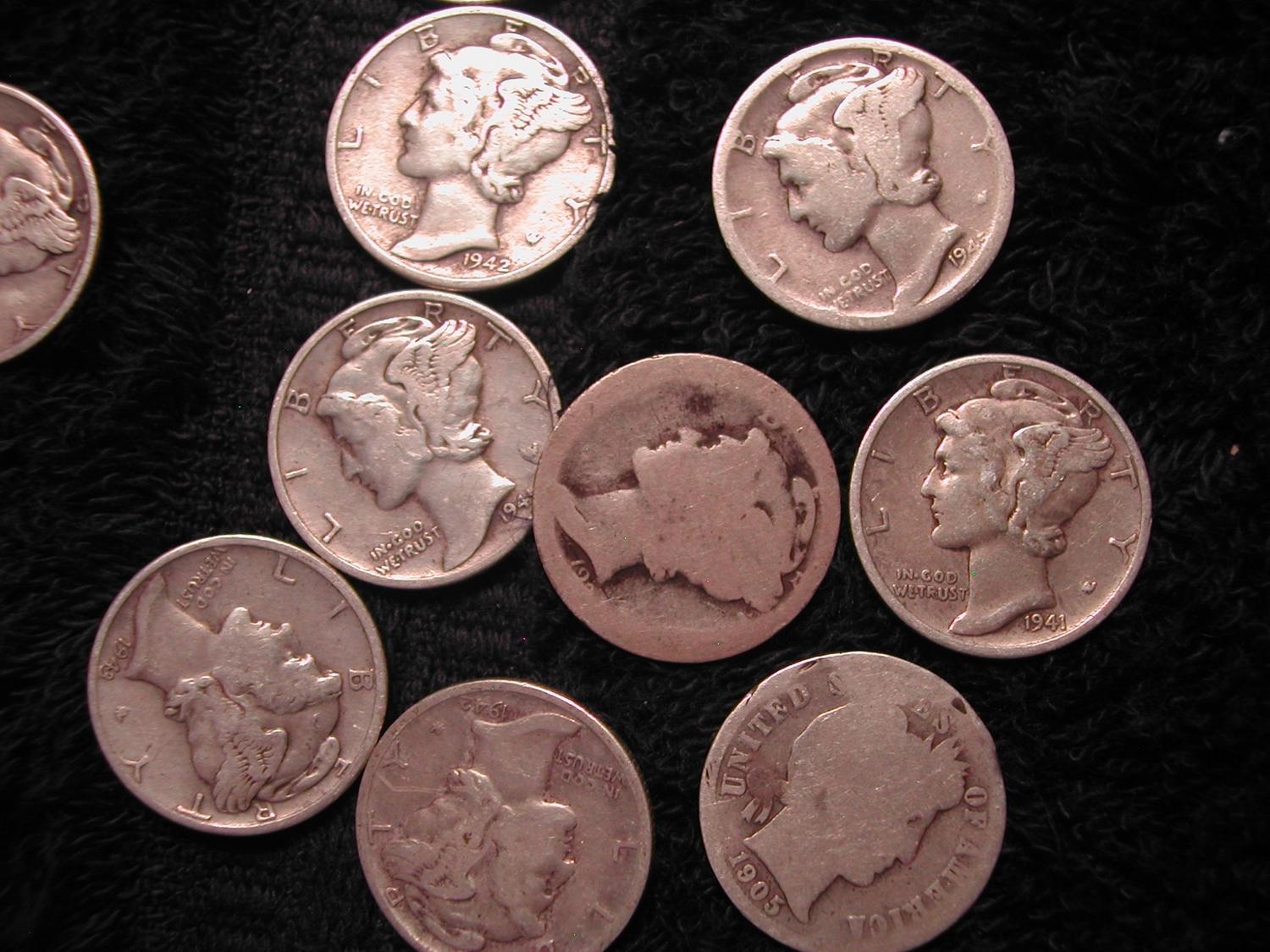 1944 WALKING LIBERTY HALF, 11 MERCURY DIMES-2-1941, 2-1942, 2-1943, 1944, 1945, 2 UNREADABLE 1914