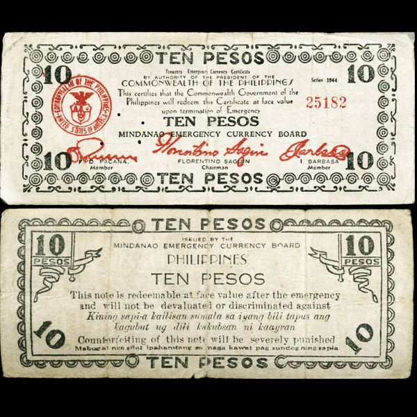 1944 WW2 Guerrilla Rebel Philippines 10P Note Mindinao (CUR-007284)