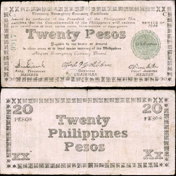 1944 WW2 Guerrilla Rebel Philippines 20P Note Negros (CUR-007306)