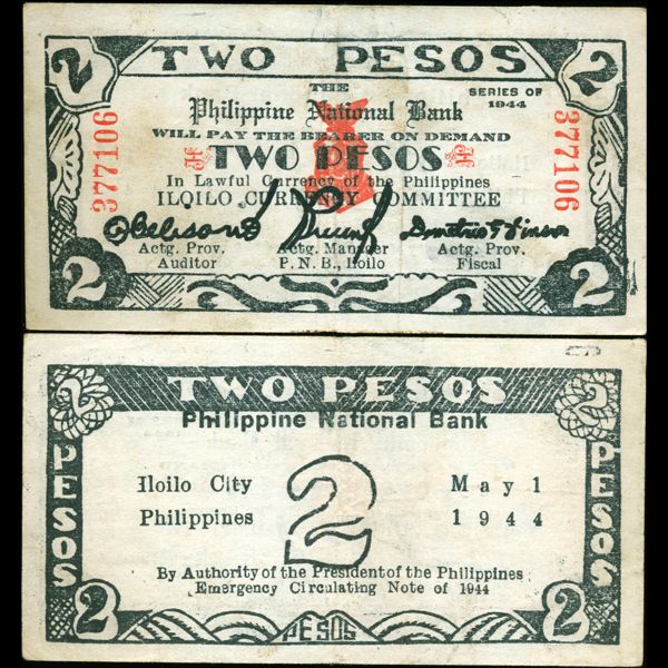 1944 WW2 Guerrilla Rebel Philippines 2P Note Iloilo (CUR-007225)