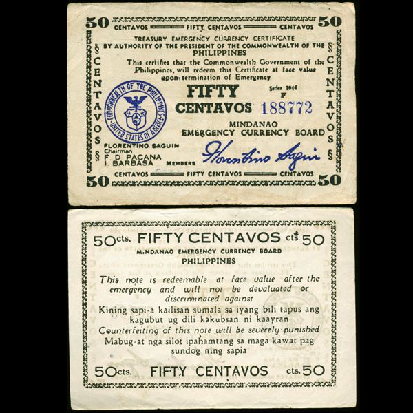 1944 WW2 Guerrilla Rebel Philippines 50c Note Mindanao (CUR-07186)
