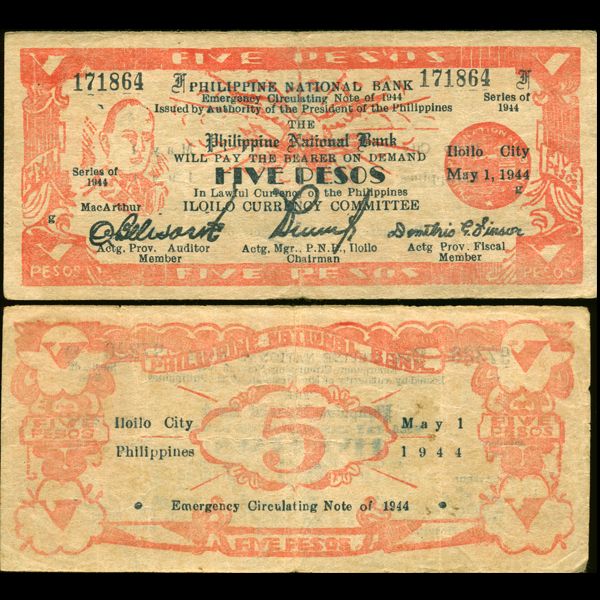1944 WW2 Guerrilla Rebel Philippines 5P Note Iloilo (CUR-007239)