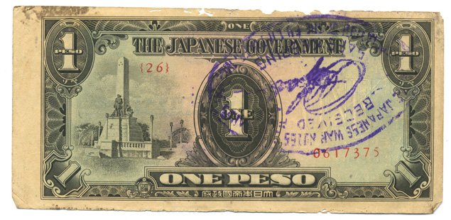 Scarce Philippines Japanese invasion money; 1 peso Type 2; crisp circulated condition RARE missing serial number; WW2 antique