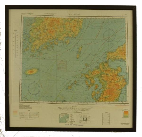 1944 edition One side shows Nagasaki Japan, & the other side Kagoshima 26" x 27-1/2"