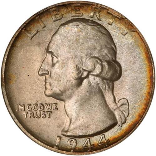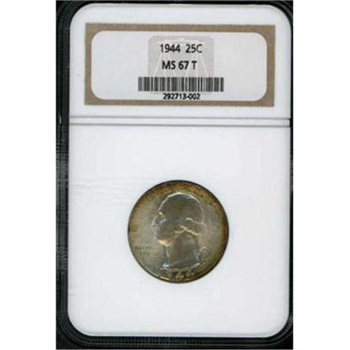 <b>1944 Washington Quarter Dollar. NGC graded MS67 T.</b> Lovely original toned surface <b>(PCGS # 5824)</b>