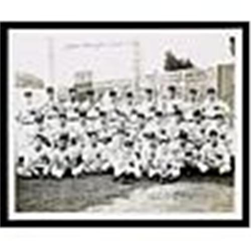 8" x 10" team photo on heavy stock signed in blue and black fountain pen by 30 members of the 1944 Washington Senators. Signatures include HOFers Early Wynn and Rick Ferrell, manager Ossie Bluege, Harlond Clift, Al Evans, Alex Carrasquel, Johnny Niggeling, Roger Wolff, Jake Powell, Gil Torres, Joe Kuhel and several others. Photo is EXMT with minor creasing, clear signatures grade an overall 8 or better. Accompanied by a LOA from JSA.
