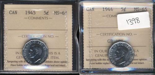 1944 and 1945 both ICCS graded MS65, tw