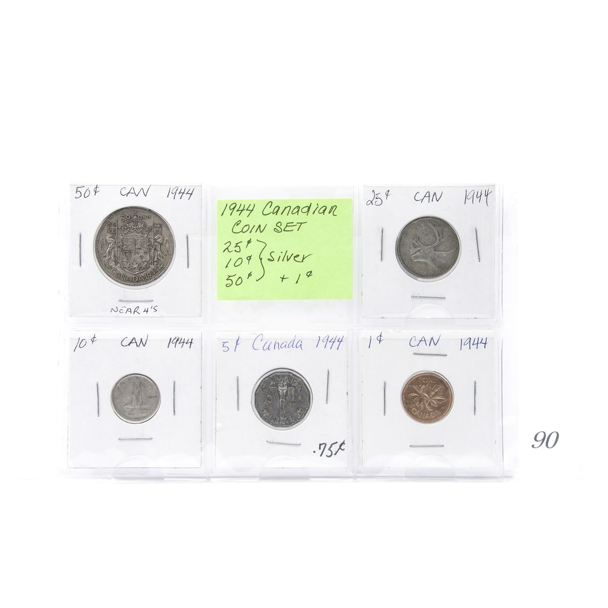 1944 canadian coin set; 25cent, 10cent and 50cent