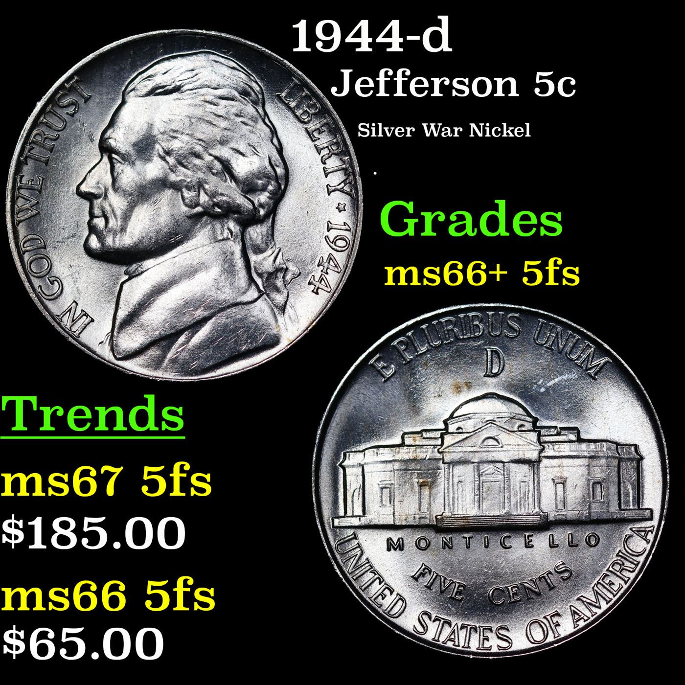 1944-d Jefferson Nickel 5c Grades GEM++ 5fs.