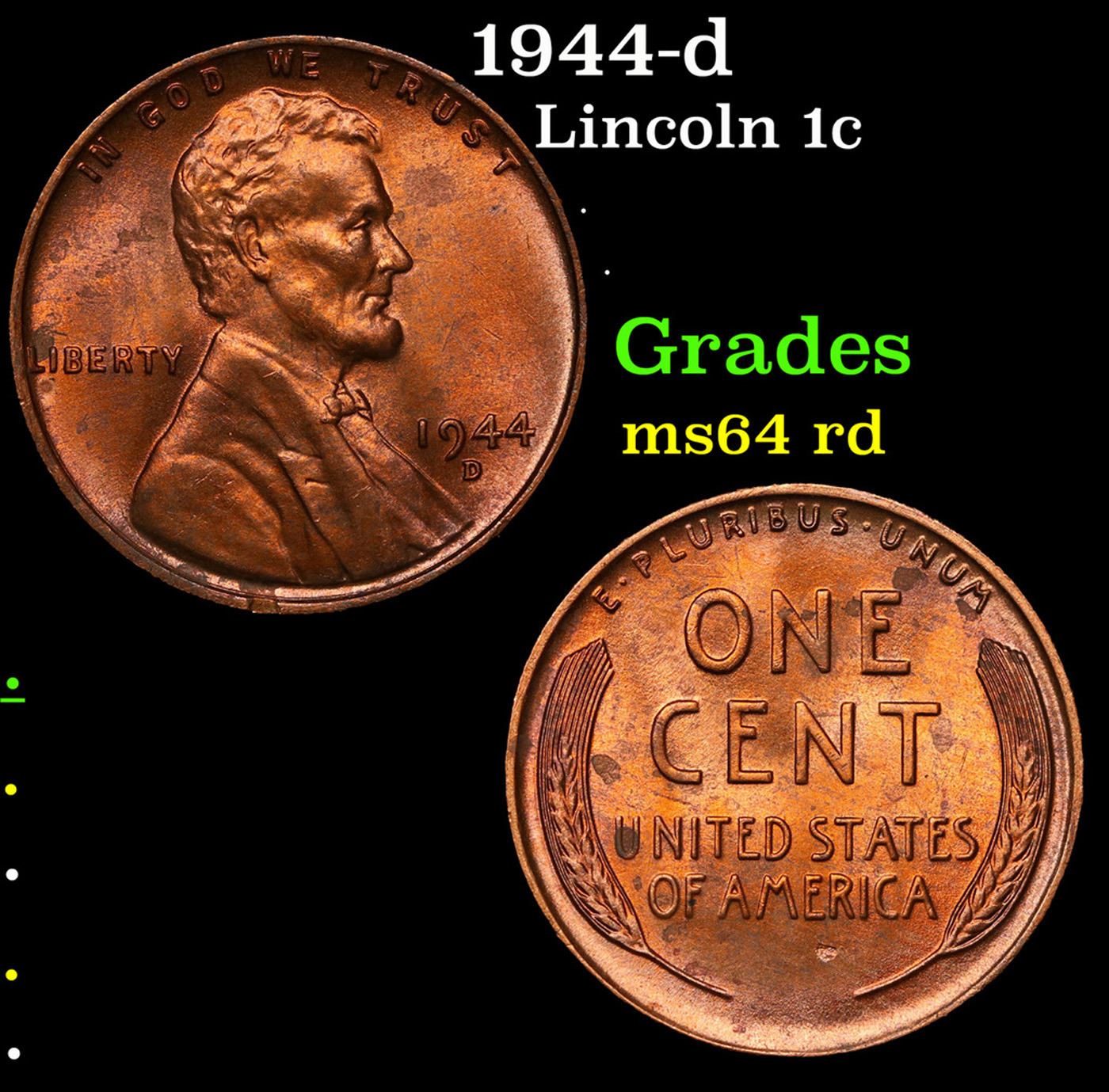 1944-d Lincoln Cent 1c Grades Choice Unc RD.