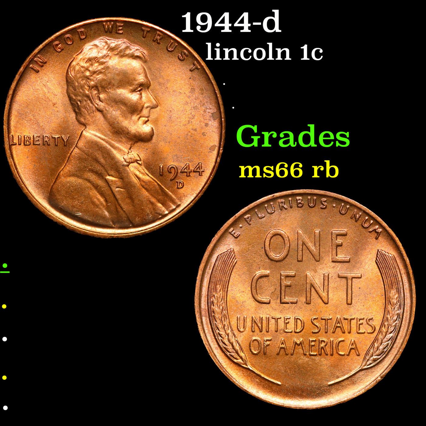 1944-d Lincoln Cent 1c Grades GEM+ Unc RB.