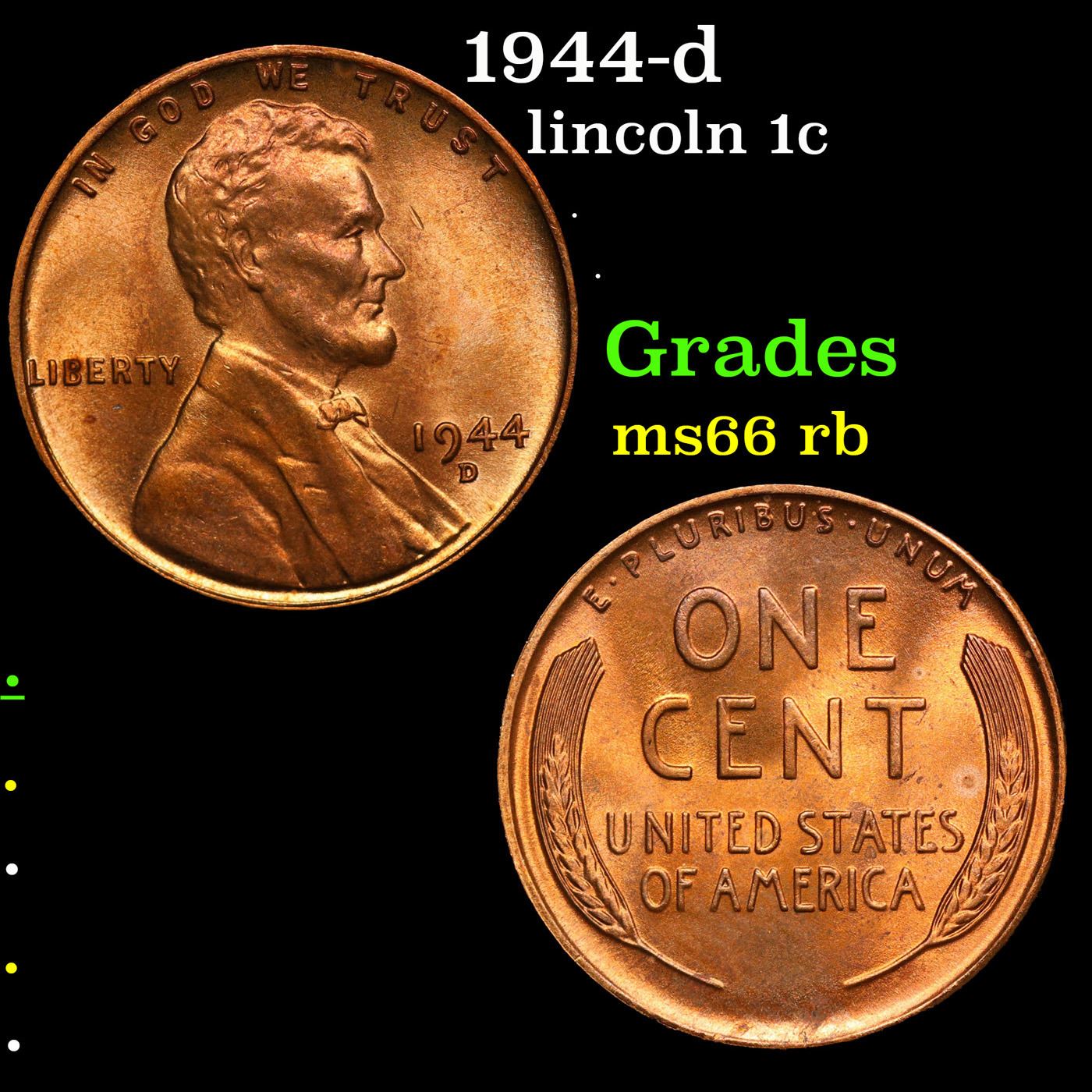 1944-d Lincoln Cent 1c Grades GEM+ Unc RB.