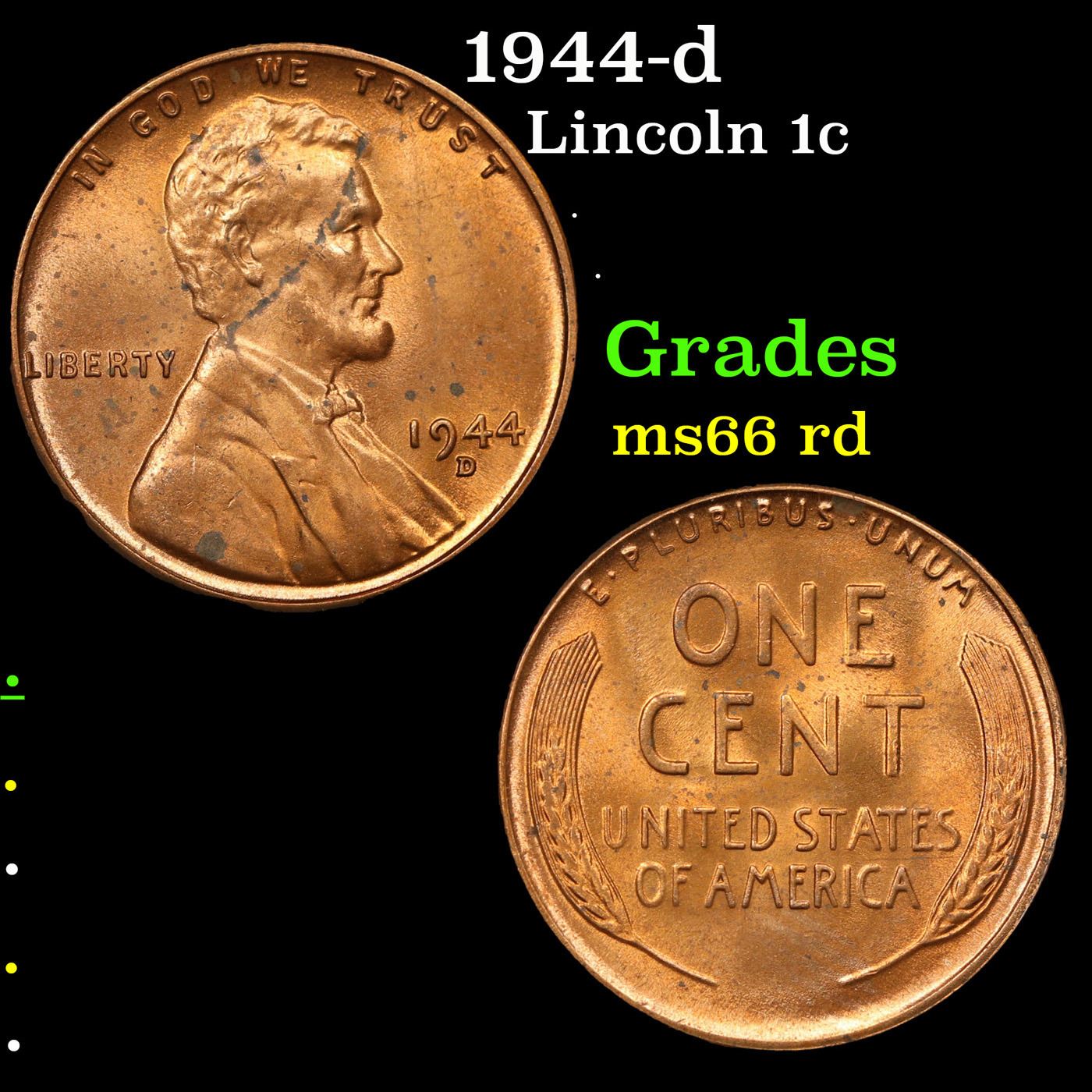 1944-d Lincoln Cent 1c Grades GEM+ Unc RD.