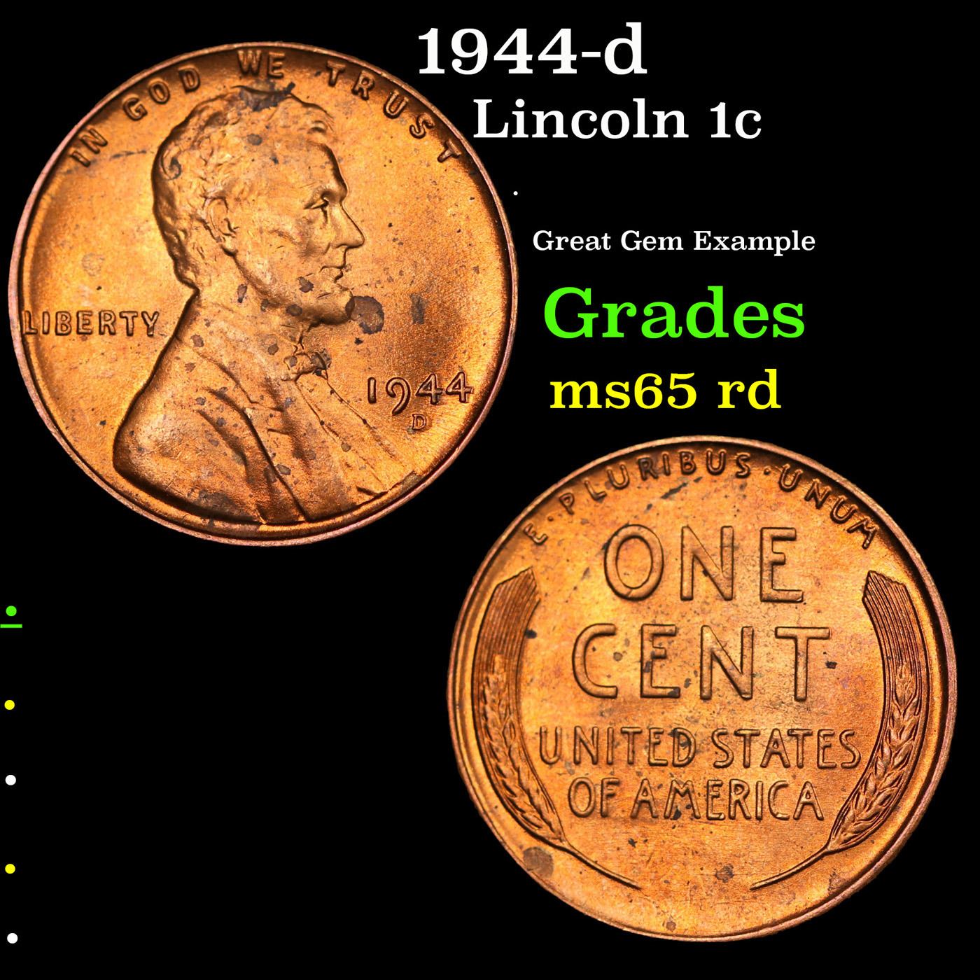 1944-d Lincoln Cent 1c Grades GEM Unc RD.