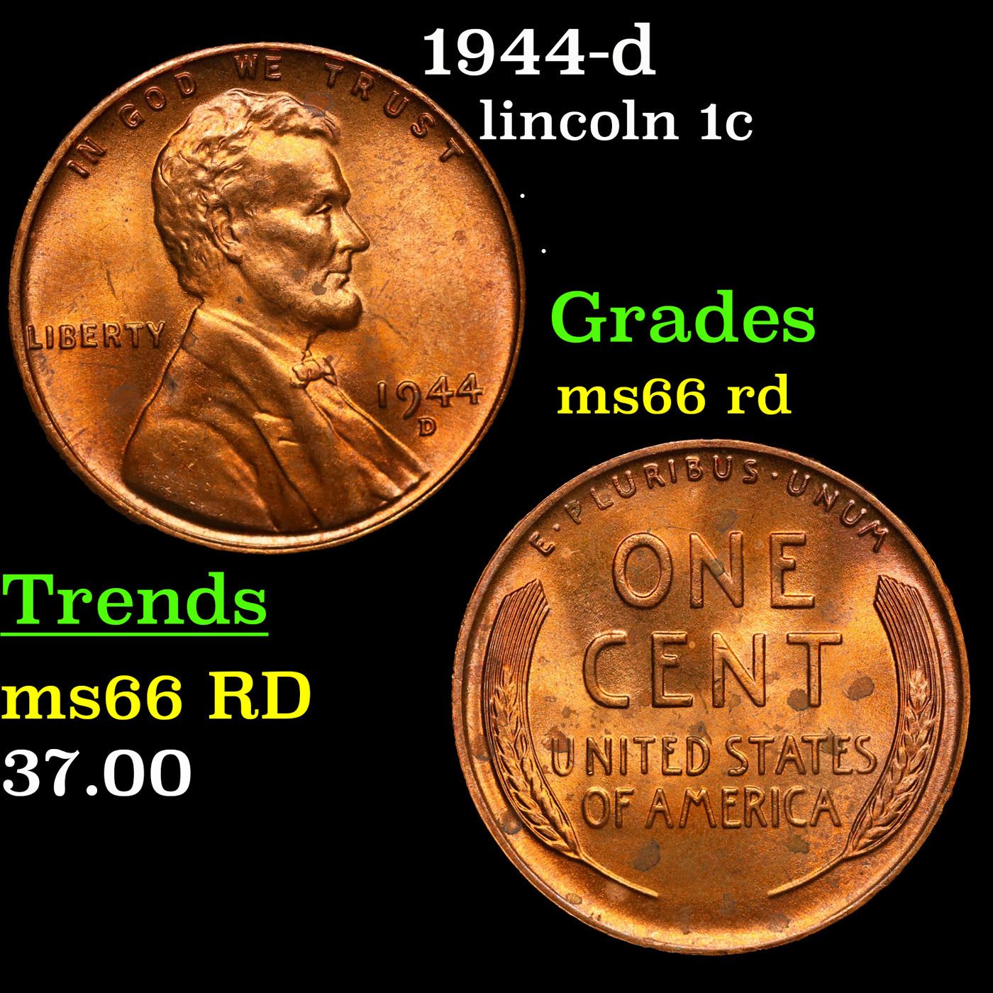 1944-d Lincoln Cent 1c Grades GEM+ Unc RD.