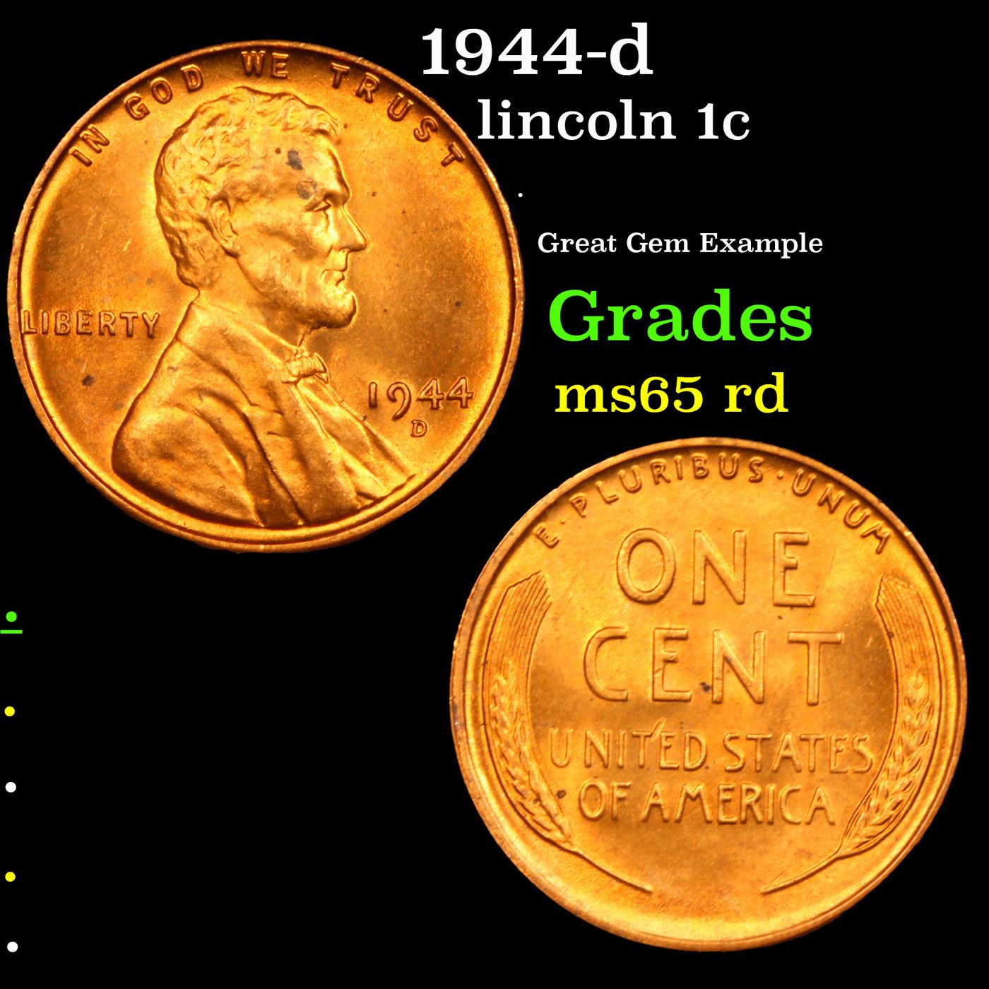 1944-d Lincoln Cent 1c Grades GEM Unc RD.