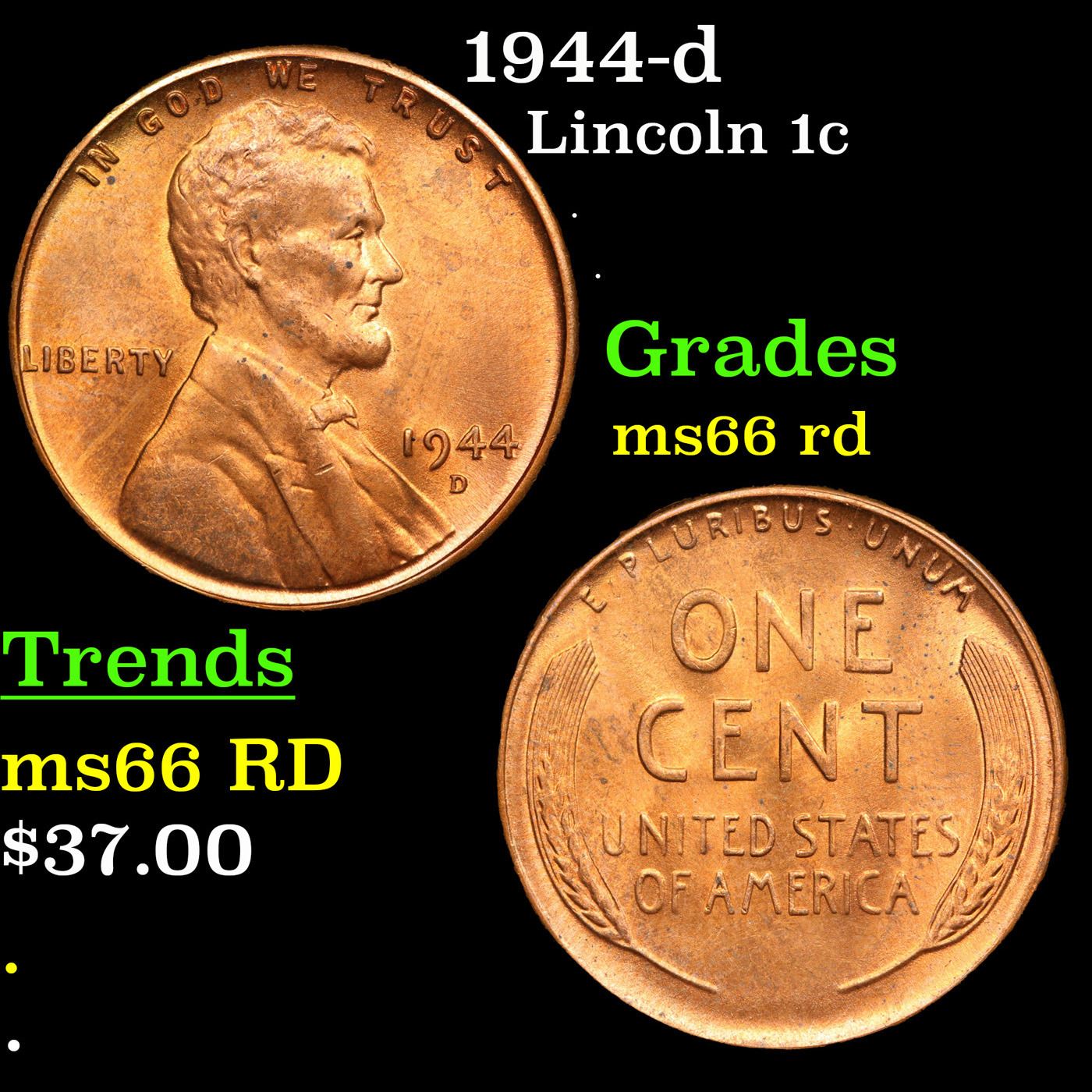 1944-d Lincoln Cent 1c Grades GEM+ Unc RD.