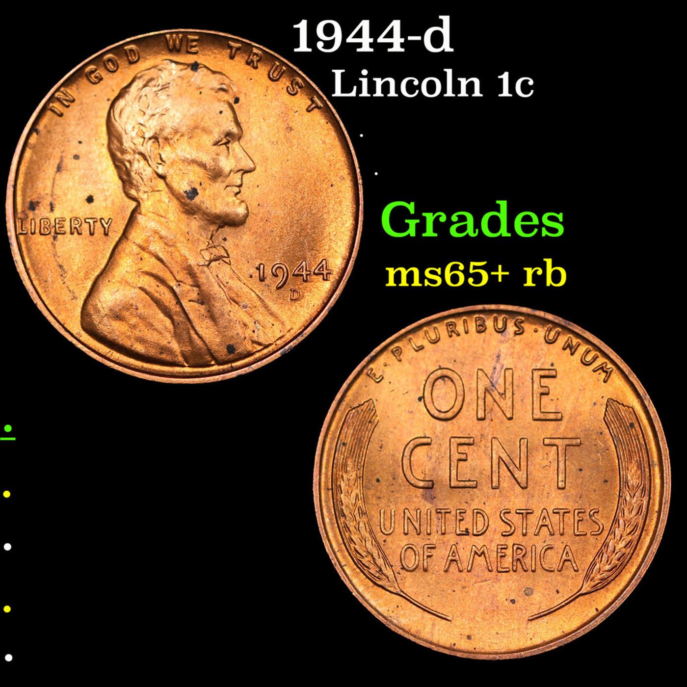 1944-d Lincoln Cent 1c Grades Gem+ Unc RB.