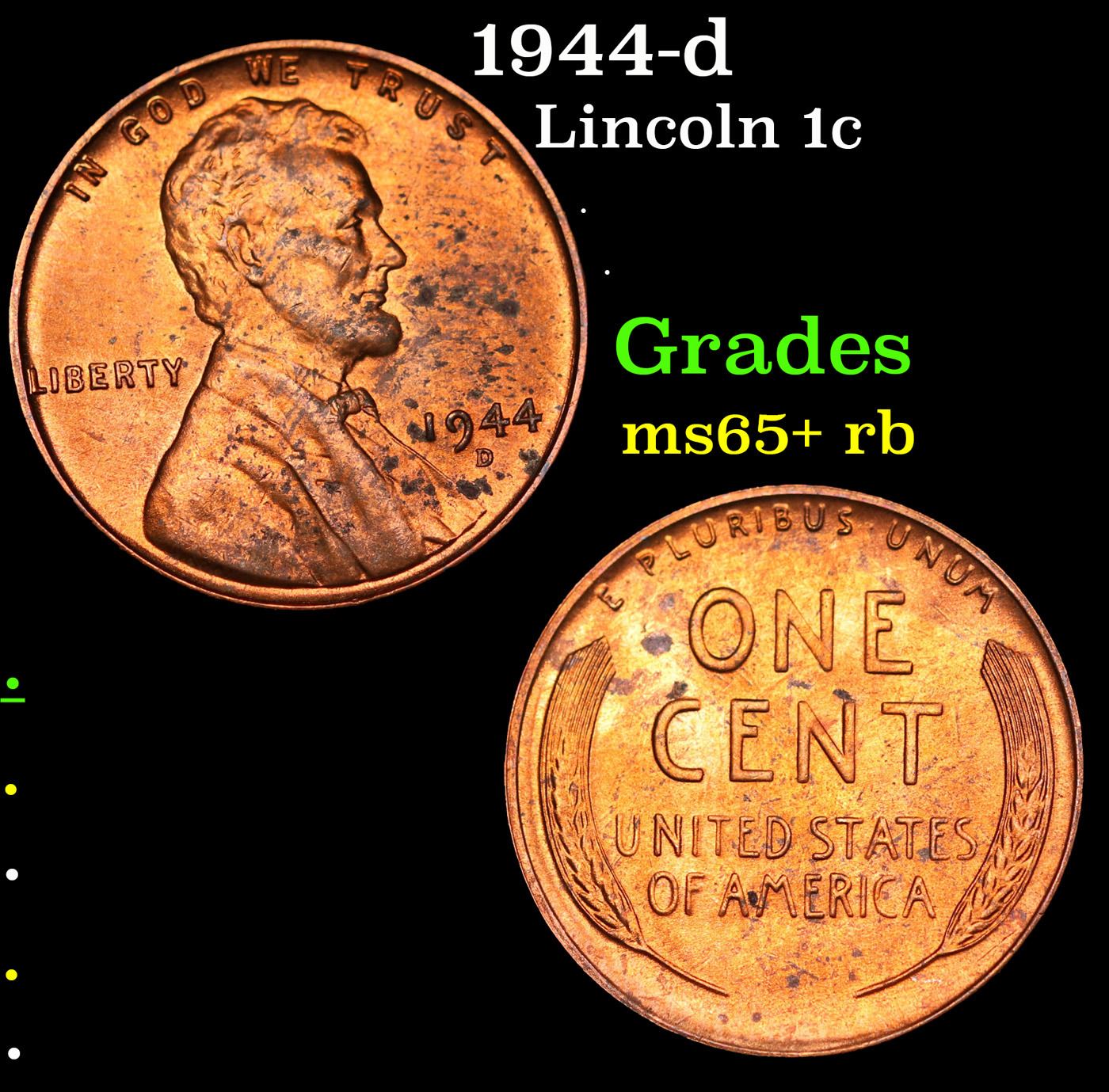 1944-d Lincoln Cent 1c Grades Gem+ Unc RB.
