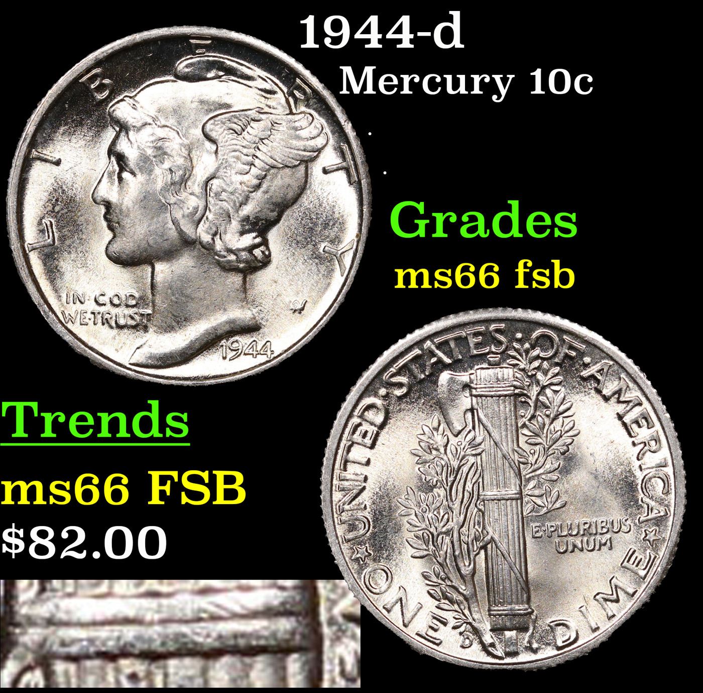 1944-d Mercury Dime 10c Grades GEM+ FSB.