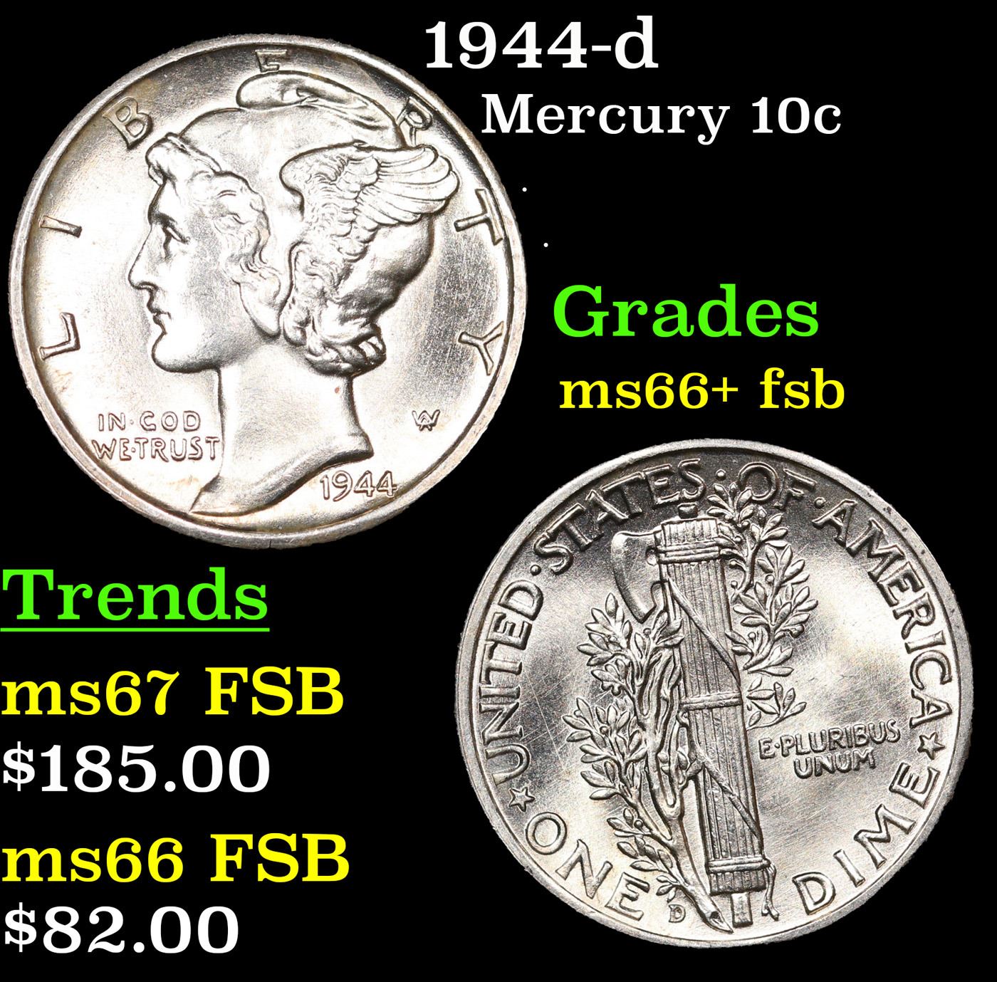 1944-d Mercury Dime 10c Grades GEM++ FSB.