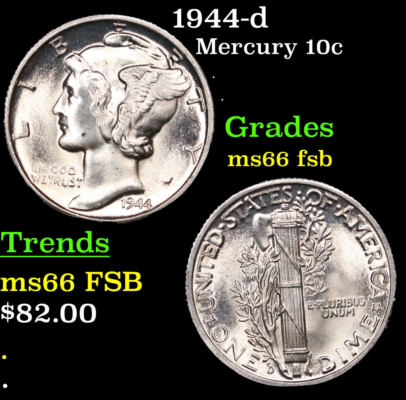 1944-d Mercury Dime 10c Grades GEM+ FSB.