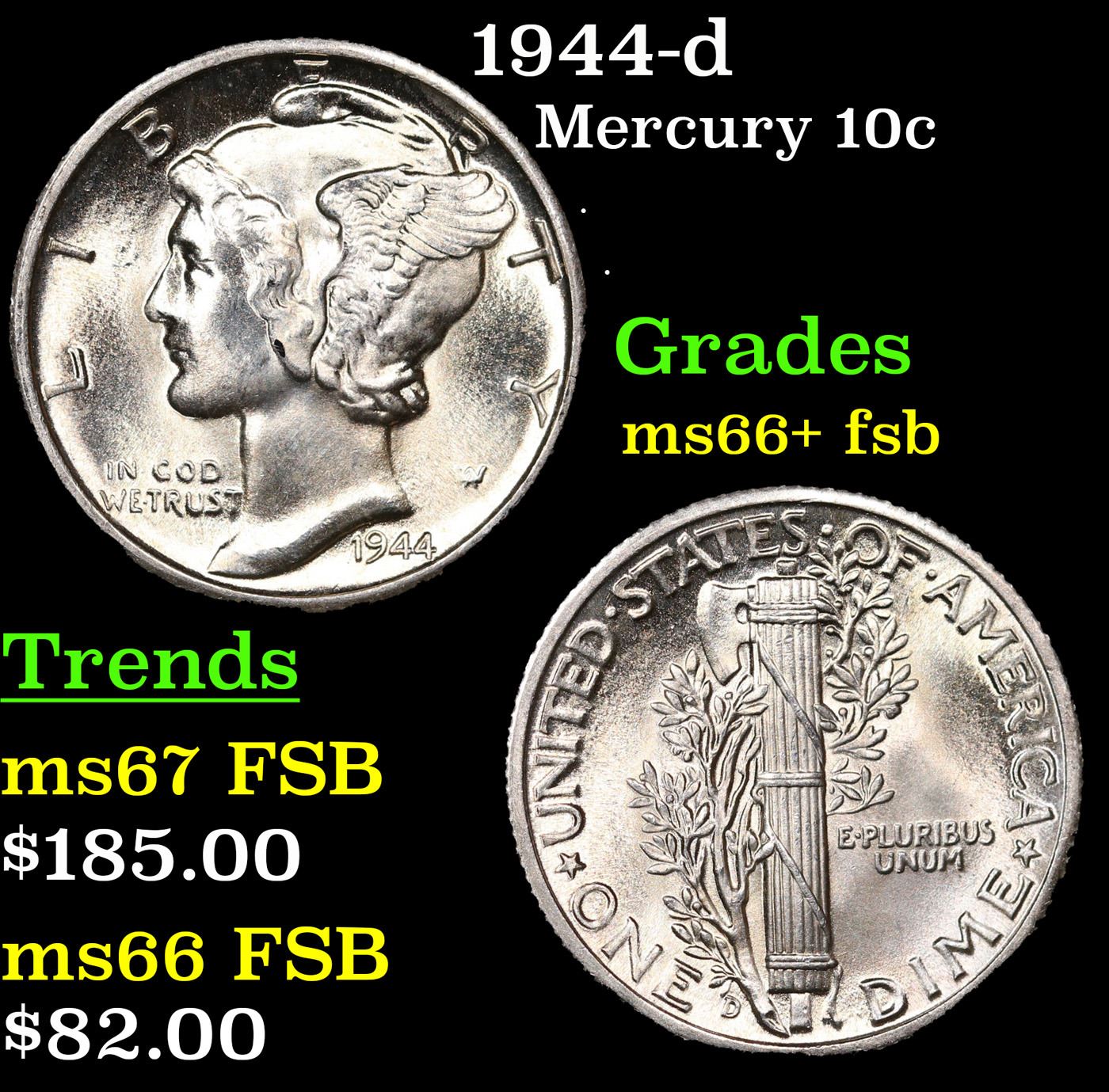 1944-d Mercury Dime 10c Grades GEM++ FSB.