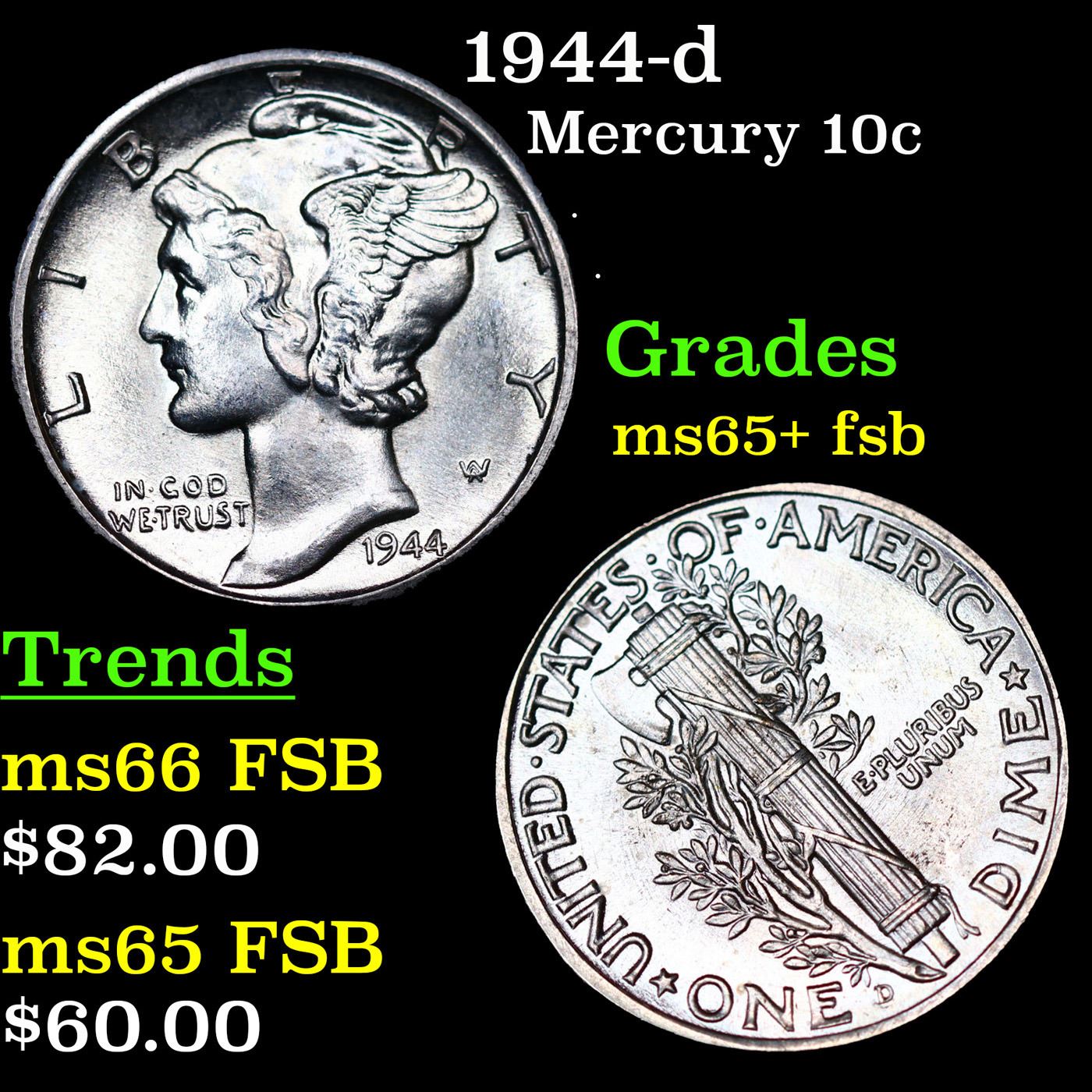 1944-d Mercury Dime 10c Grades GEM+ FSB.