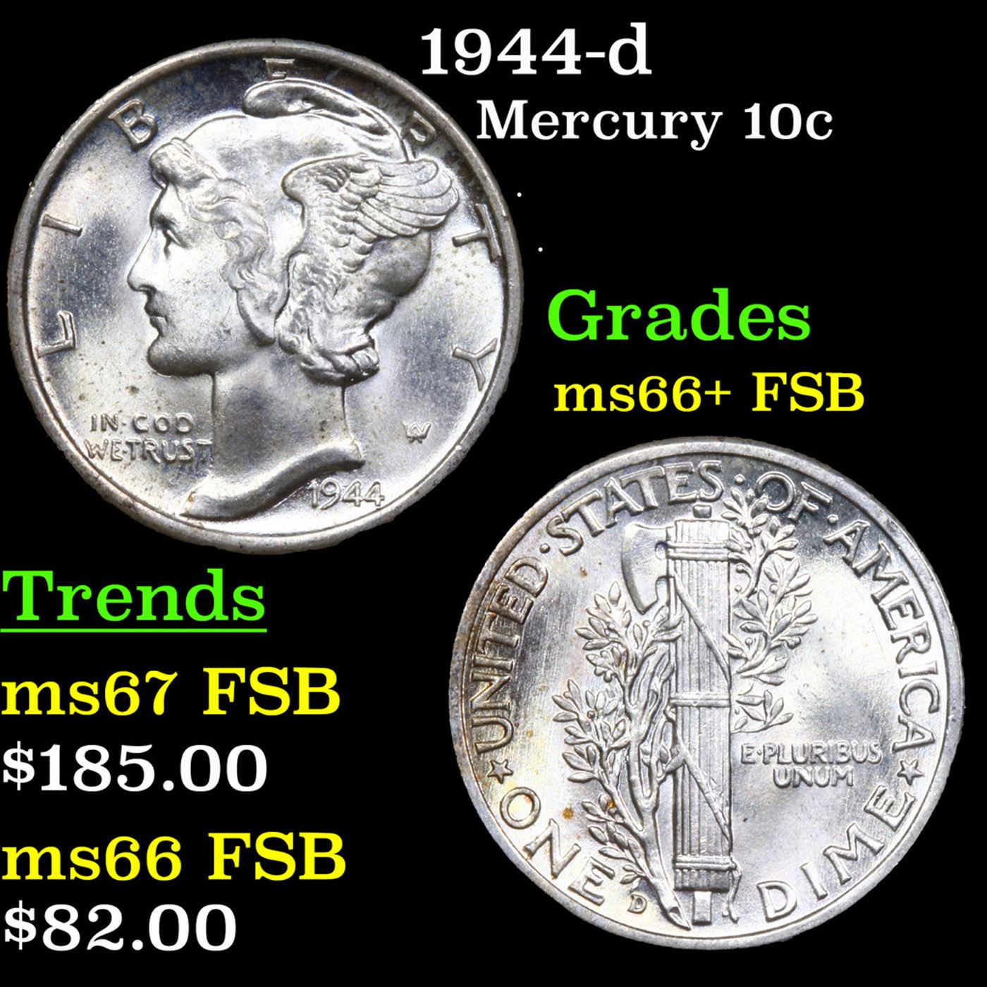 1944-d Mercury Dime 10c Grades GEM++ FSB.
