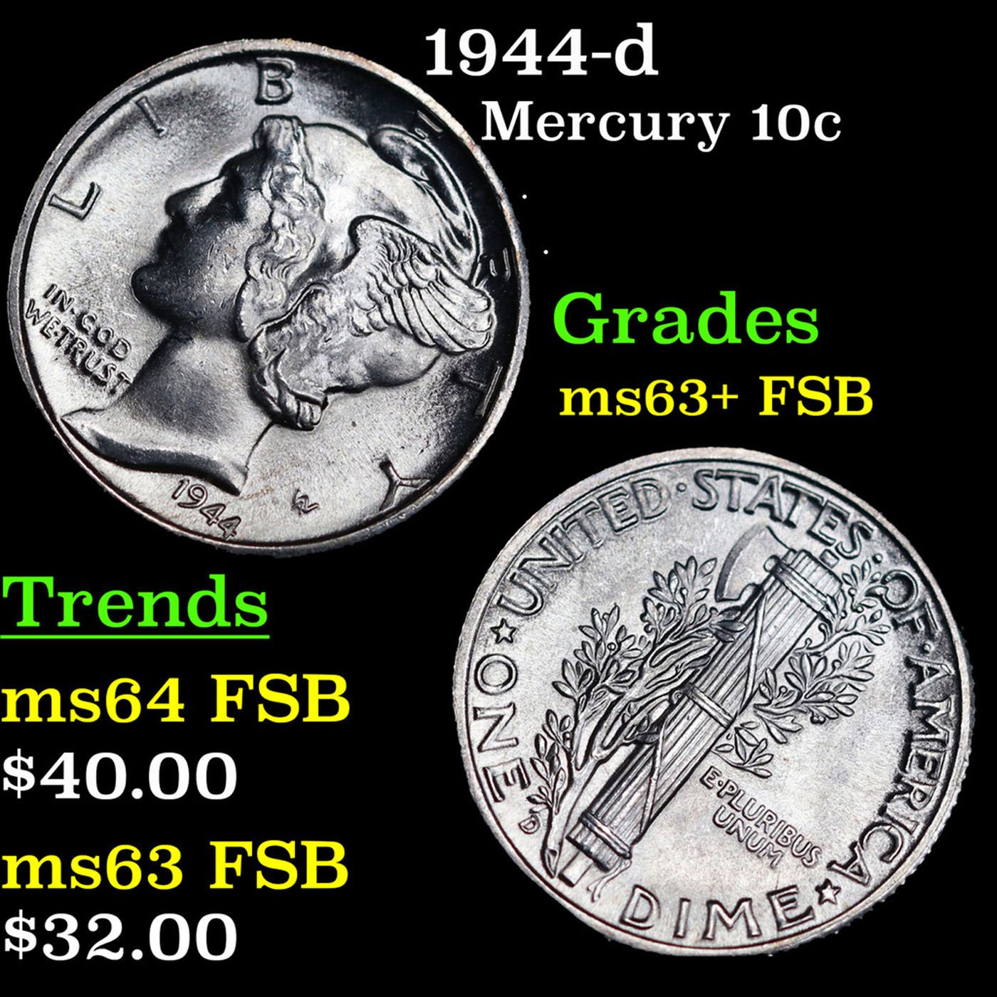 1944-d Mercury Dime 10c Grades Select Unc+ FSB.