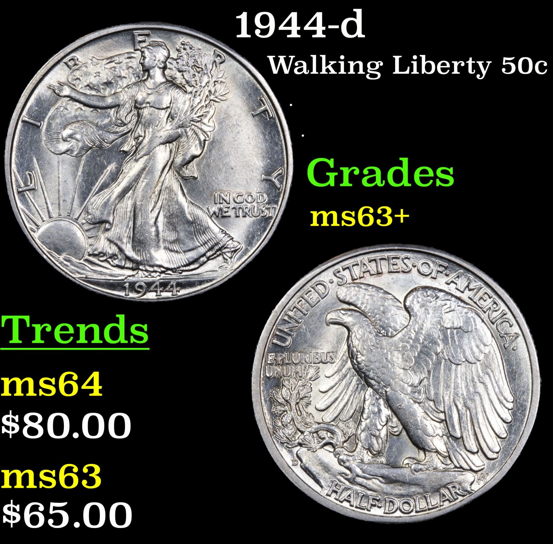 1944-d Walking Liberty Half Dollar 50c Grades Select+ Unc.