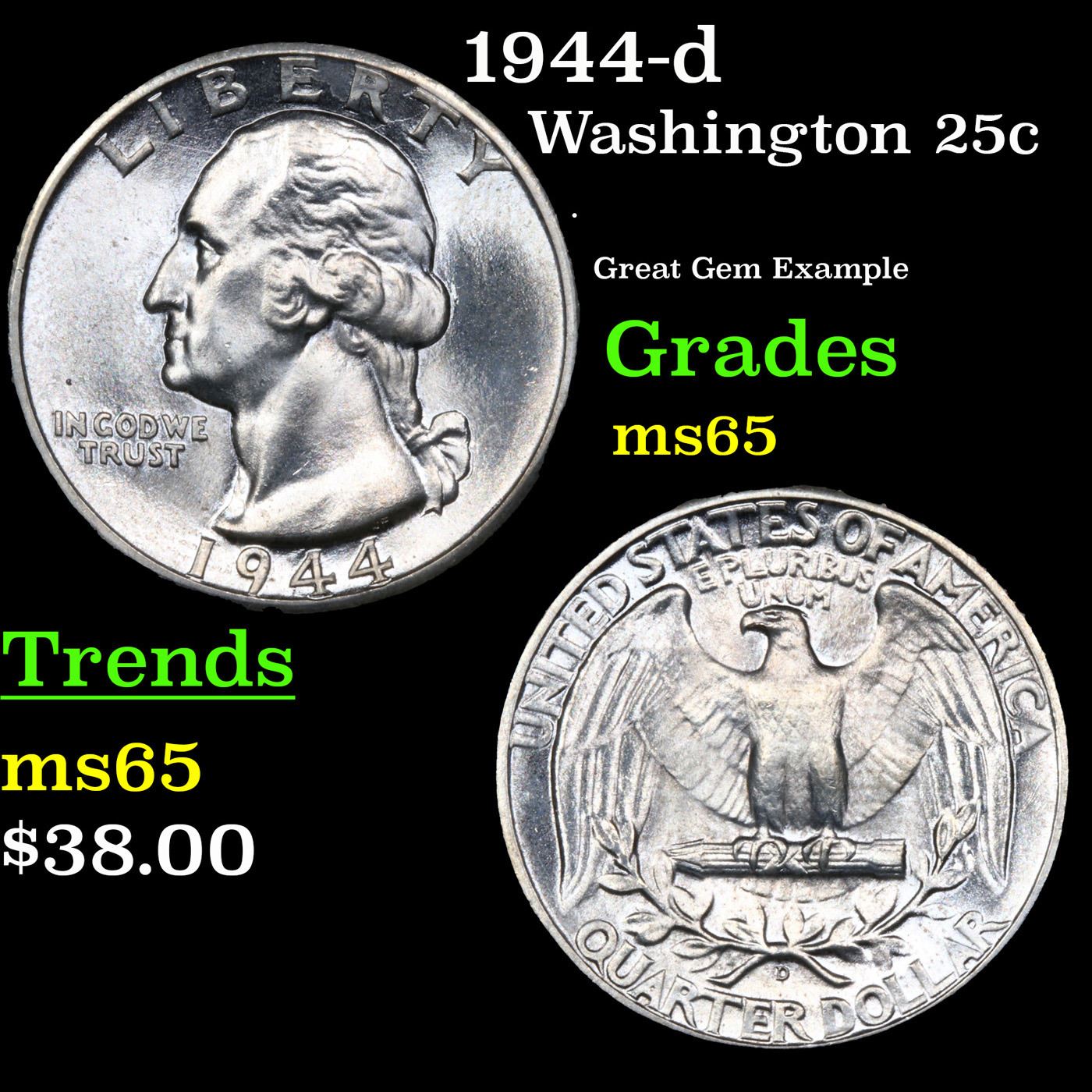 1944-d Washington Quarter 25c Grades GEM Unc.