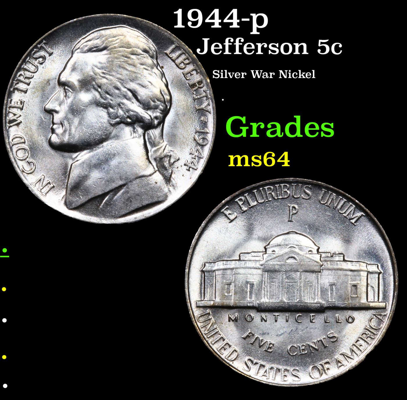 1944-p Jefferson Nickel 5c Grades Choice Unc.