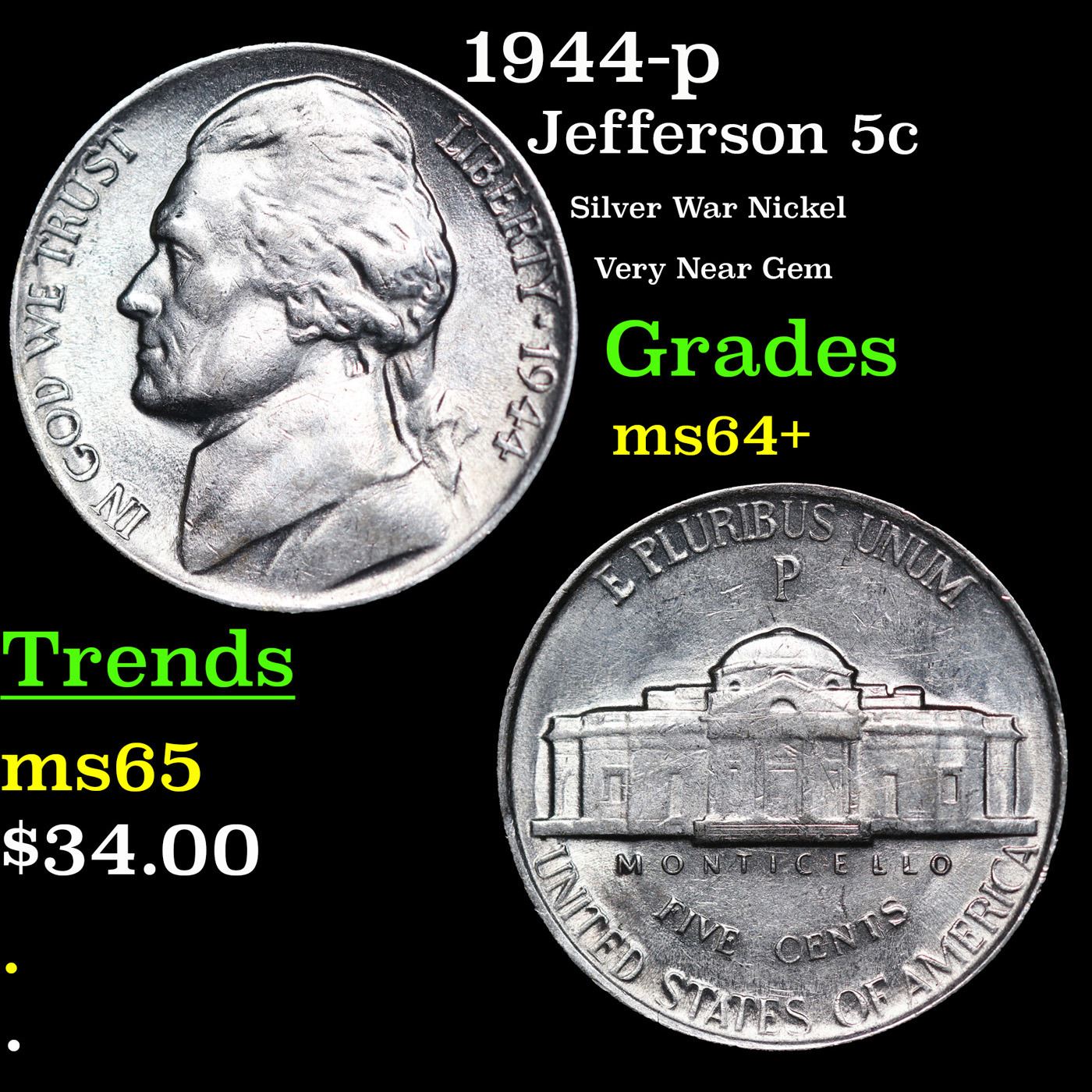 1944-p Jefferson Nickel 5c Grades Choice+ Unc.