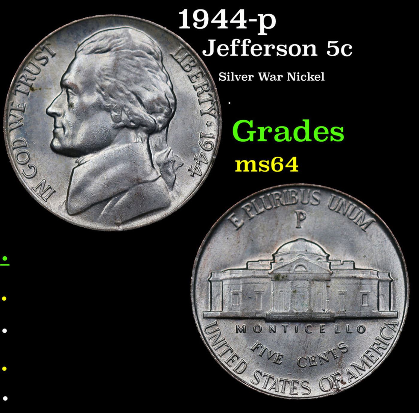 1944-p Jefferson Nickel 5c Grades Choice Unc.
