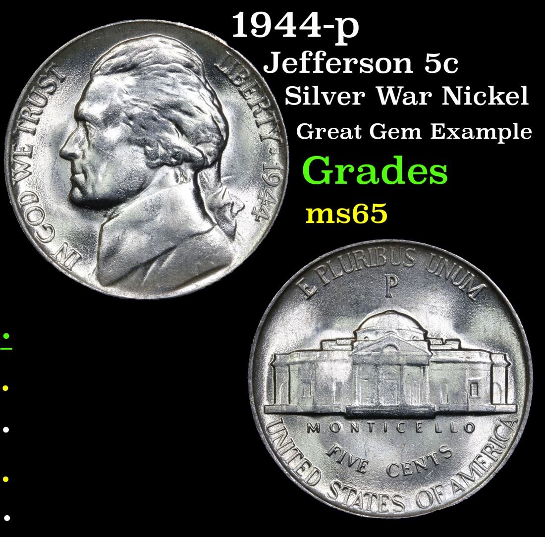 1944-p Silver War Nickel Great Gem Example Jefferson Nickel 5c Grades GEM Unc.